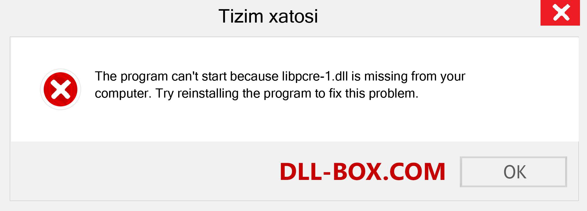 1. Dasturni ishga tushirib bo'lmaydi, chunki libpcre-1.dll kompyuteringizda yo'q. Ushbu muammoni hal qilish uchun dasturni qayta o'rnatishga harakat qiling.